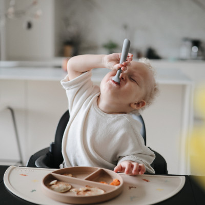 ¡Introduce a tu bebé en los alimentos sólidos con las cucharas de silicona de Mushie!