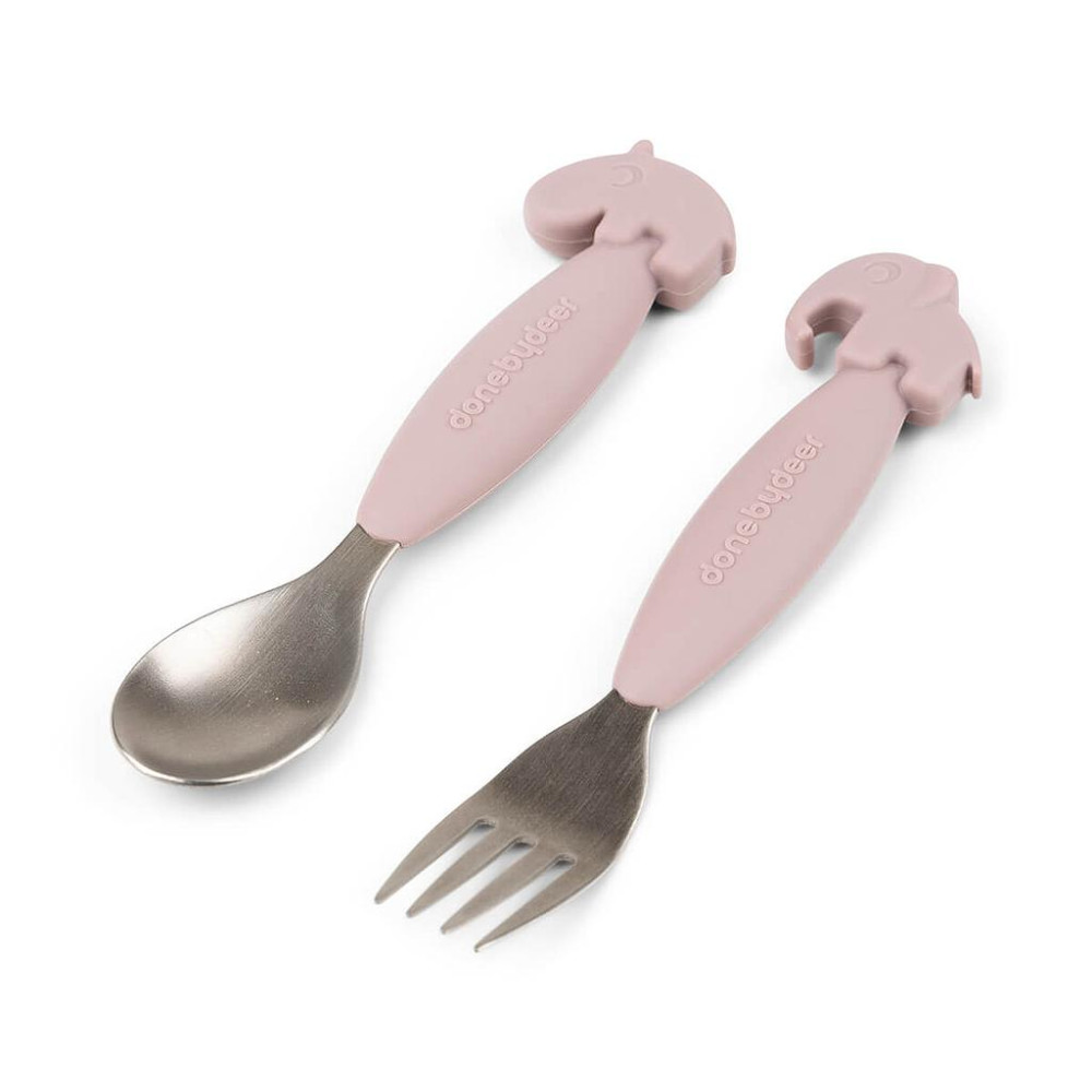 El juego de cubiertos Deer Friends Easy-grip con cuchara y tenedor asegura un agarre firme y ayuda a mantener a los pequeños comedores concentrados en la tarea en cuestión.