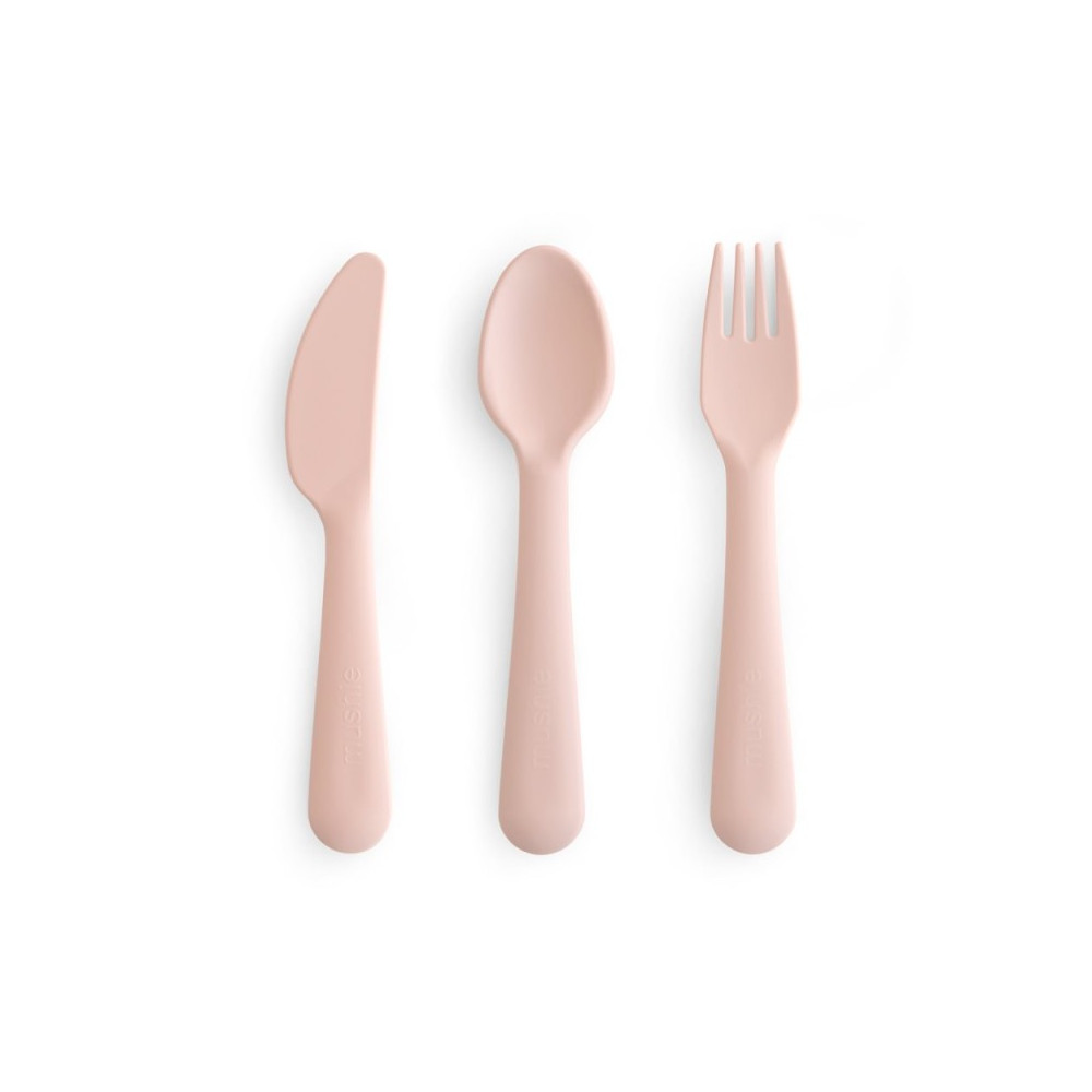 Un elegante y práctico juego de cubiertos de plástico PP de Mushie, diseñado pensando en los más pequeños.