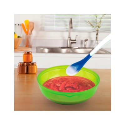 Basta con hundir la punta de la Cuchara en los purés del bebé para ver si están demasiado calientes. Si la punta se pone blanca, es que la comida está demasiado caliente para el bebé.