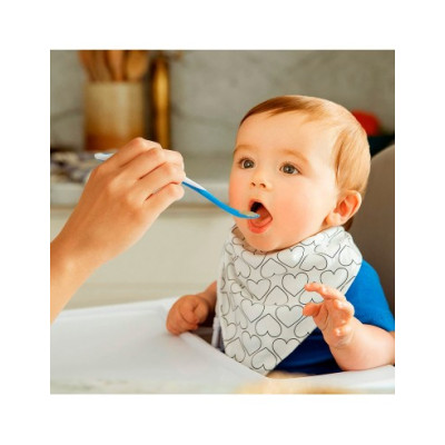 la punta de la cuchara se torna blanca cuando la comida del bebé está demasiado caliente.