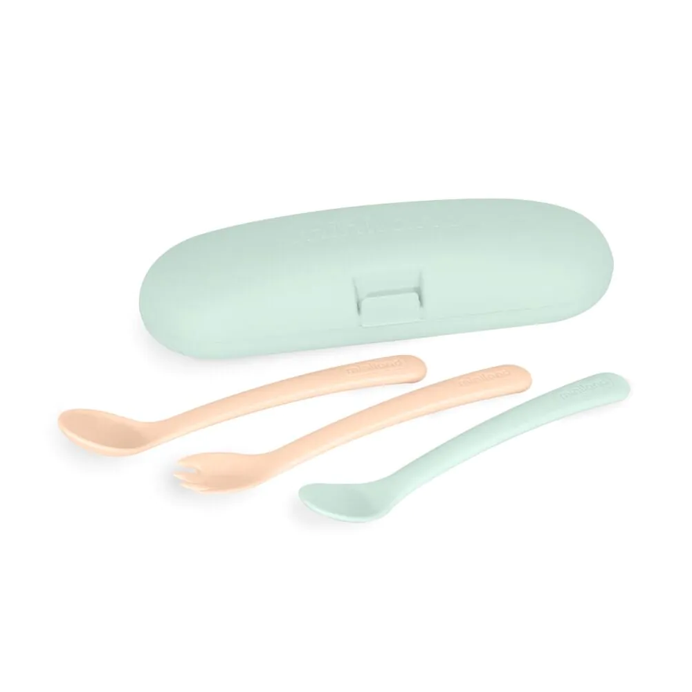Los cubiertos cuentan con mangos ergonómicos, especialmente diseñados para adaptarse a las manos pequeñas del bebé. Esta forma facilita un agarre firme y cómodo, ayudando a desarrollar la coordinación y la confianza al comer de forma independiente.
