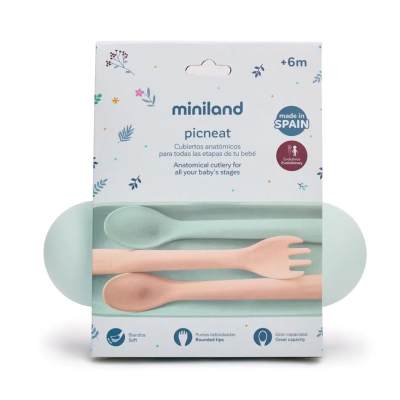 Picneat Dreamland de Miniland es un set de cubiertos infantiles anatómicos, diseñado para acompañar al bebé en todas las etapas del aprendizaje de la alimentación. Su diseño evolutivo facilita una transición progresiva hacia la autonomía durante las comidas.