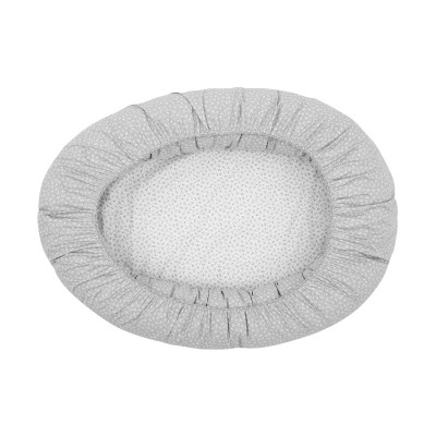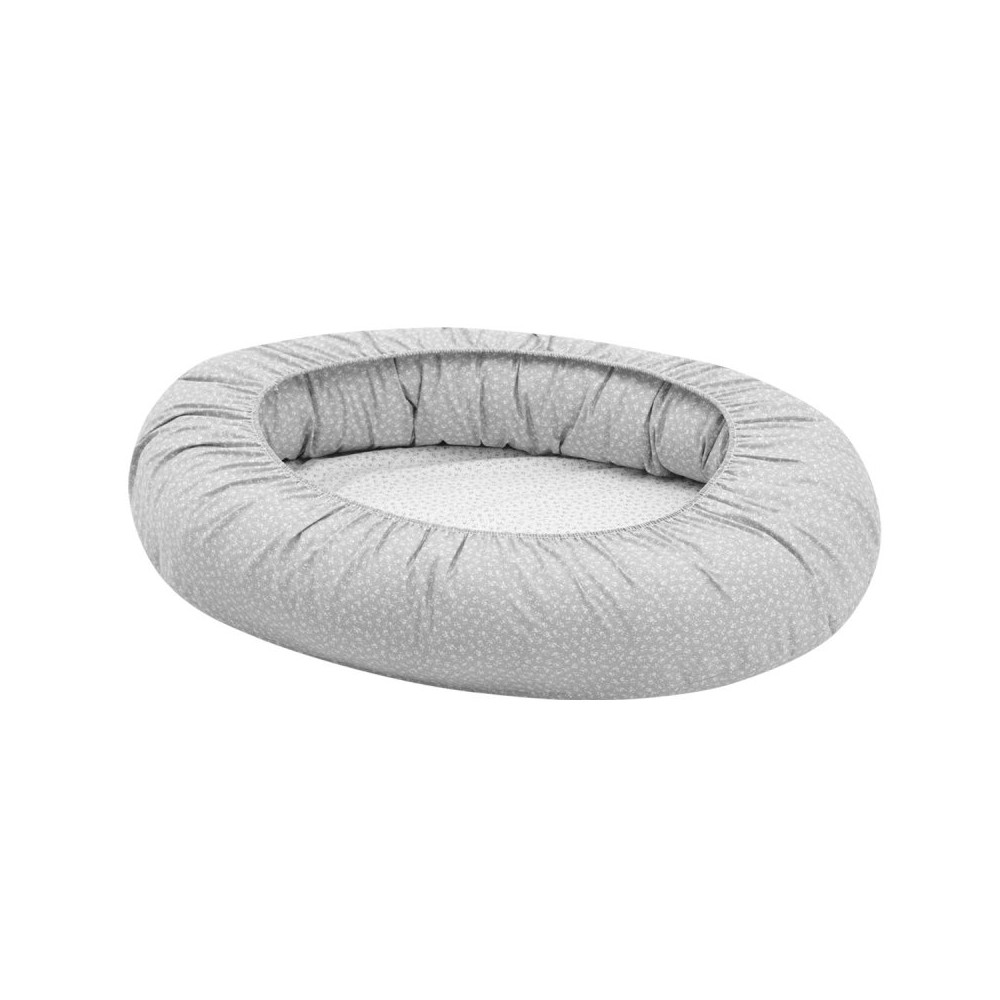 El cojín está relleno de fibras huecas para la máxima adaptación y la base, lleva una colchoneta plastificada para poder gastarlo luego como cambiador. Se puede lavar todo el textil en lavadora y secadora.