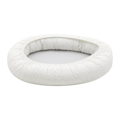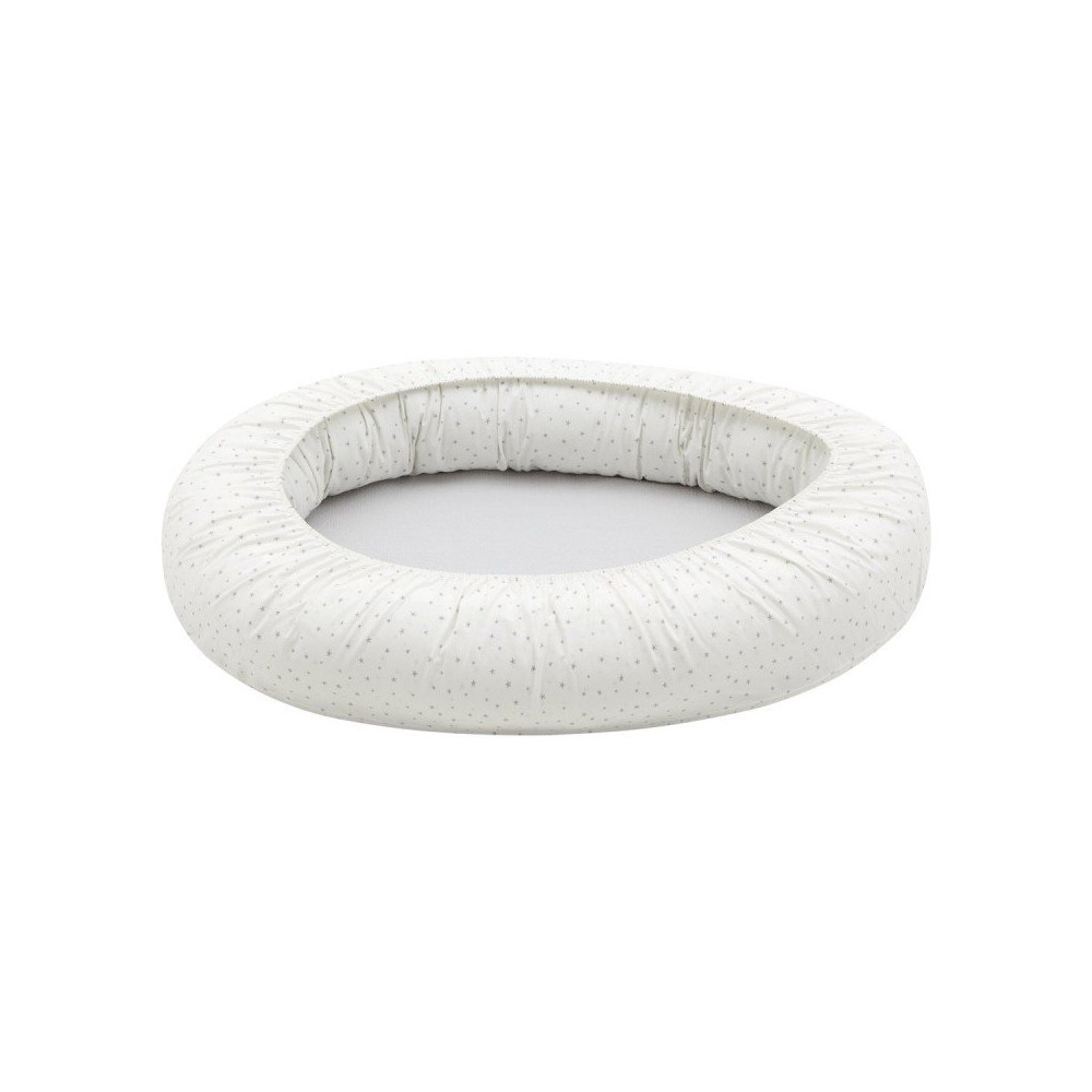 El cojín está relleno de fibras huecas para la máxima adaptación y la base, lleva una colchoneta plastificada para poder gastarlo luego como cambiador. Se puede lavar todo el textil en lavadora y secadora.
