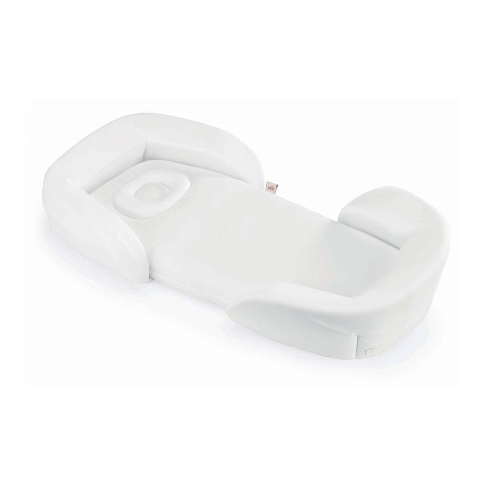 Elemento con doble inclinación y posibilidad de uso: bajo la cabeza del bebé para la función antirregurgitación y/o bajo las piernas para estimular la circulación y contener al bebé.