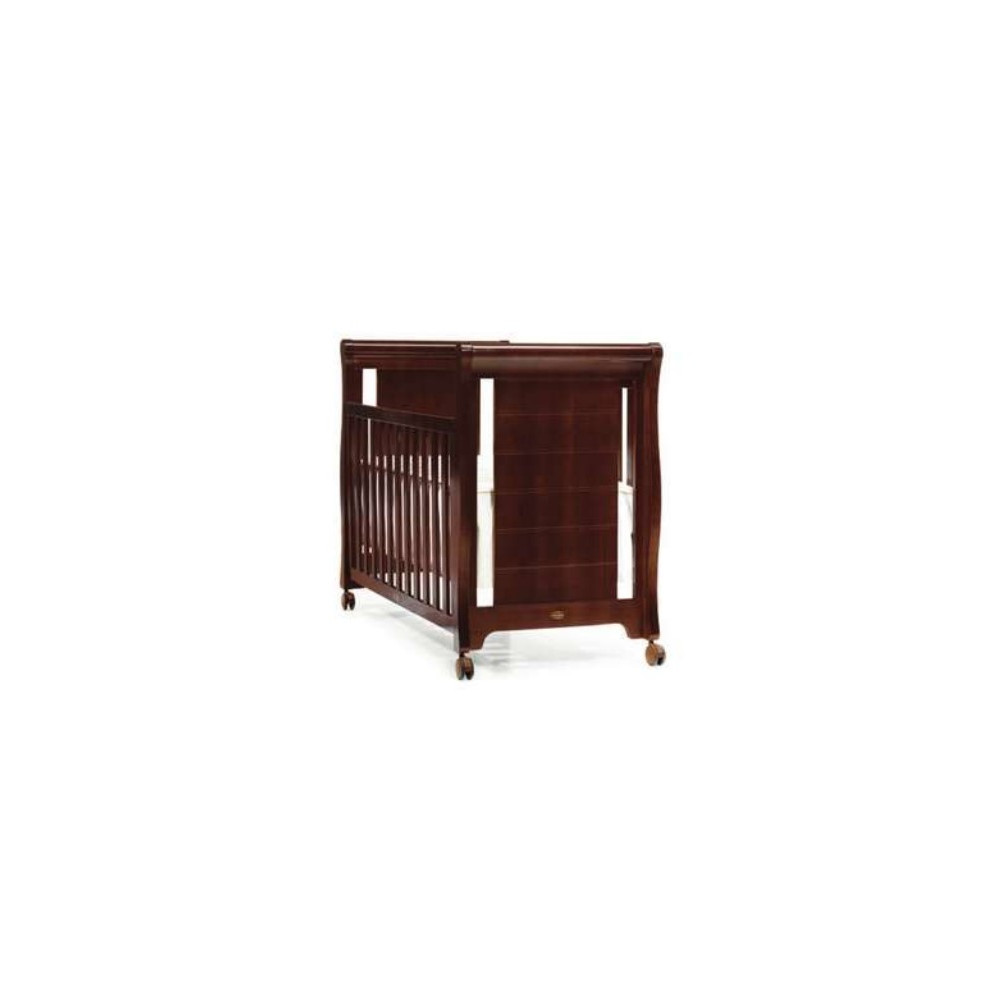 La cuna Imperio de Trama de 120x60 cuenta con 3 posiciones de altura de somier. Uno de los laterales se regula en altura para facilitar la introducción y la extracción del bebé en la cuna. Cuenta con 4 ruedas giratorias y con freno.