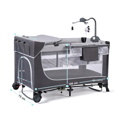 La cuna de viaje LEODY es perfecta para los viajes. No importa si vais a visitar la familia o salís juntos de viaje: un plegado rápido y fácil, un marco sólido y 2 niveles de altura del fondo te permitirán crear un espacio seguro y cómodo para dormir.