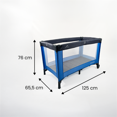 Cuna de viaje de plegado sencillo y compacto con sistema de cierre fácil.