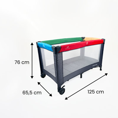 Cuna de viaje de plegado sencillo y compacto con sistema de cierre fácil.
