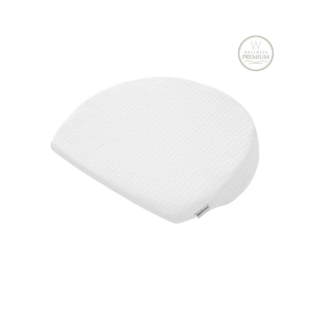 Por una parte supone una cuña de viscoelástica que aporta un apoyo abdominal firme que evita dolores de espalda durante el embarazo.