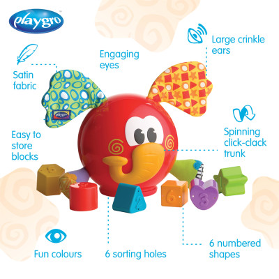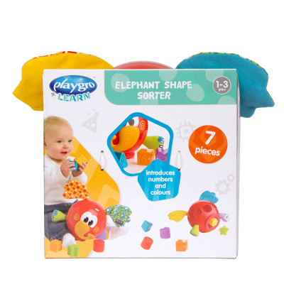 El clasificador de formas Elephant está diseñado para enseñar formas, colores y lógica.