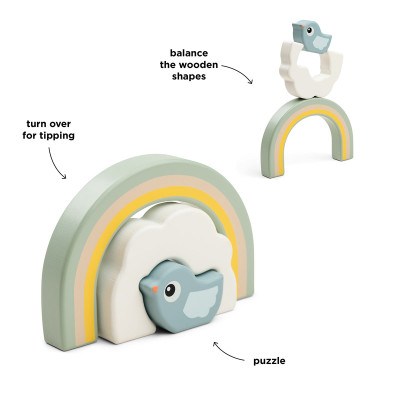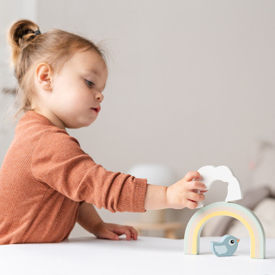 Este versátil juego le permite a su hijo apilar, equilibrar y participar en juegos creativos, y también funciona como una pieza decorativa con sus lindos y brillantes colores para la habitación del bebé.