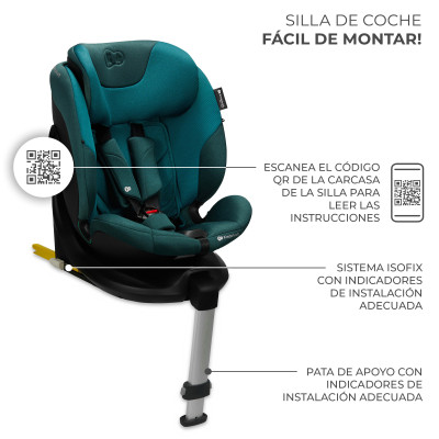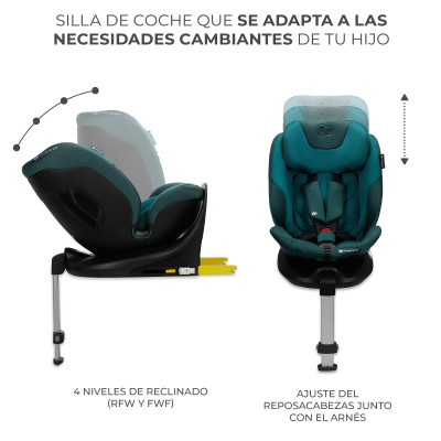 I-FIX i-Size está equipada con el sistema EASY SPIN 360°, que facilita girar cómodamente la silla alrededor de su propio eje. Así, sacar al niño del coche o abrocharlo con el arnés de 5 puntos resulta más sencillo, ya que solo hay que rotar la silla hacia la puerta. Además, este sistema permite cambiar rápidamente la posición de la silla entre RWF y FWF, sin tener que desmontarla.