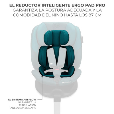 I-FIX i-Size permite que el niño viaje hasta los 4 años a contramarcha, una posición 5 veces más segura en caso de choque frontal. Además, la cómoda instalación con el sistema ISOFIX y la pata de apoyo aumenta la estabilidad del montaje. La comodidad del viaje está garantizada por el reductor ERGO PAD PRO, con un uso extendido hasta los 87 cm de estatura. El reposacabezas posee espuma viscoelástica que se adapta a la forma de la cabeza del peque, además del sistema AIR FLOW, que garantiza la temperatura óptima y la circulación del aire alrededor del niño.