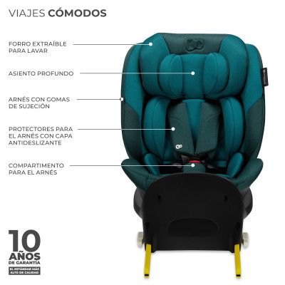 I-FIX i-Size es una silla giratoria (40-150 cm) que redefine los estándares de seguridad de viaje. No solo cumple la normativa R129 i-Size, sino que se ha sometido a pruebas en condiciones muy estrictas, como choques frontales y laterales a un 28 % más de velocidad de lo establecido por la norma. Estos análisis permiten comprobar mejor la resistencia contra roturas de la carcasa de la silla, ya que debe aguantar una energía cinética un 50 % superior. La silla protegerá al niño de forma exhaustiva gracias a los sistemas de protección avanzados (H-GUARD+ y SPS+) y la espuma EPP en la carcasa y el reposacabezas.