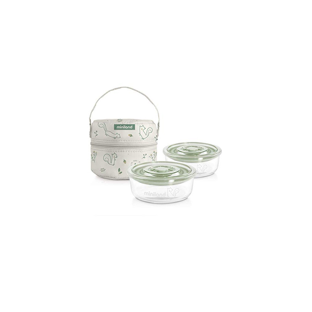 Este set eco-friendly, ideal para almacenar y transportar la comida casera del bebé, está formado por 2 recipientes de 200 ml (solo base, sin la tapa) de vidrio, material resistente y duradero, que además al ser completamente transparente permite ver perfectamente el contenido.