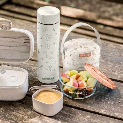 Para llevar los recipientes cómodamente a todas partes, el conjunto incluye una bolsa isotérmica de transporte, con interior aislante para ayudar a conservar mejor los alimentos, confeccionada con atractivos diseños inspirados en la naturaleza, con dos modelos para satisfacer los gustos de todos los papás.