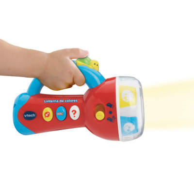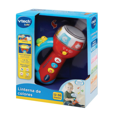 Divertida linterna con una rosca giratoria que se gira y se ilumina con 6 colores diferentes. Enseña algunos animales y sus sonidos característicos. 2 canciones y 15 melodías.