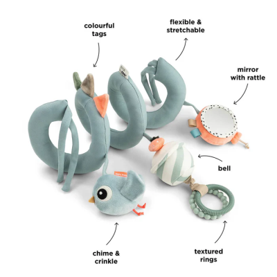 Fácil de acoplar a sillas de paseo, sillas de coche o centros de actividades.