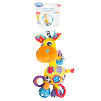 El Colgante Actividades Jirafa Jerry Playgro es un accesorio de juego que estimula el desarrollo visual y auditivo gracias a los sonidos que emite, a la vez que ayuda a calmar las molestias causadas por la dentición.