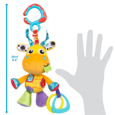 El colgante Jerry de Playgro cabe fácilmente en tu mano y también se puede colgar en cualquier lugar con una pinza especial. Al sacudirlo, escuchará el sonido de un sonajero.