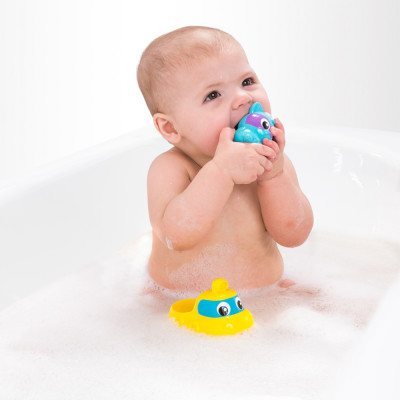 El bebé disfrutará de un sinfín de juegos acuáticos con Rainy Raccoon y su submarino musical mientras flotan alrededor de la bañera o en la piscina, tocando melodías musicales a medida que avanzan y estimulando los sentidos auditivos del bebé.