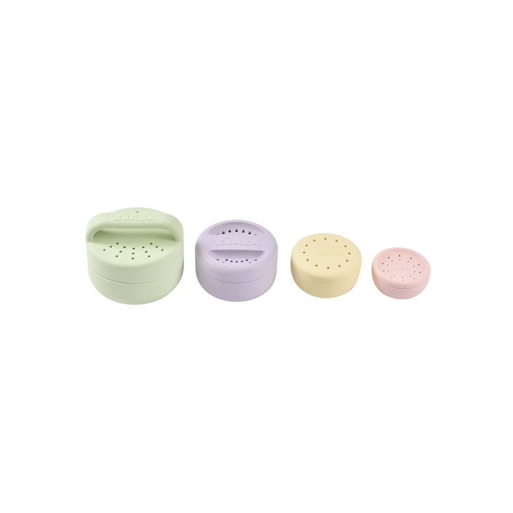 Los juguetes de baño de silicona Béaba® están diseñados para fomentar la motricidad y el descubrimiento. Apilables y encajables, estos juguetes desarrollan la motricidad y fomentan el descubrimiento. La tapa removible y los diferentes agujeros permiten variar el juego con agua, estimulando la imaginación y la coordinación de los niños. Práctico y fácil de guardar: todas las cajas caben en la más grande. La silicona suave y duradera asegura un agarre cómodo y seguro, mientras que los mangos ergonómicos facilitan el uso por manos pequeñas.
