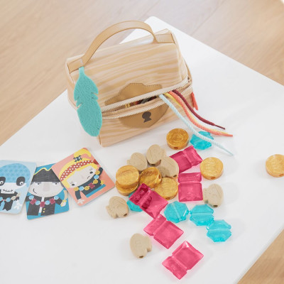 Después de jugar, los pequeños podrán guardar todas las piezas en el interior de un cofre blandito y suave con cremallera de diente grande. ¡ No se perderá ni una joya!
