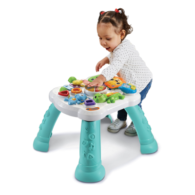 Mesita infantil de actividades sensoriales, Panel interactivo extraíble, 6 zonas de juego y aprendizaje, Juguete para bebés +12 meses. Diseño muy resistente. Enseña números, formas, colores, animales, frutas y vocabulario básico.