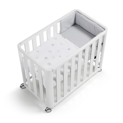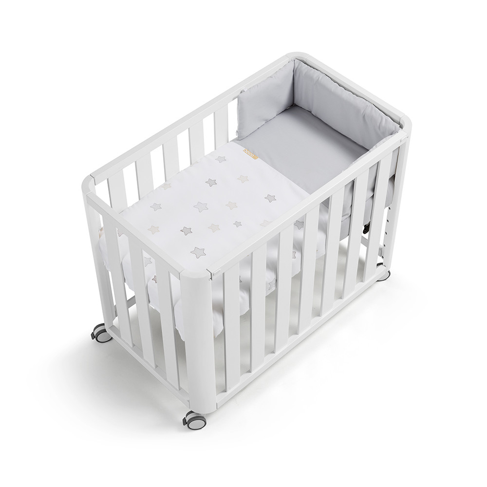 Dispone de un lateral móvil que se extrae sin necesidad de ninguna herramienta lo que permite la práctica del colecho y su utilización como cuna de manera indistinta.
