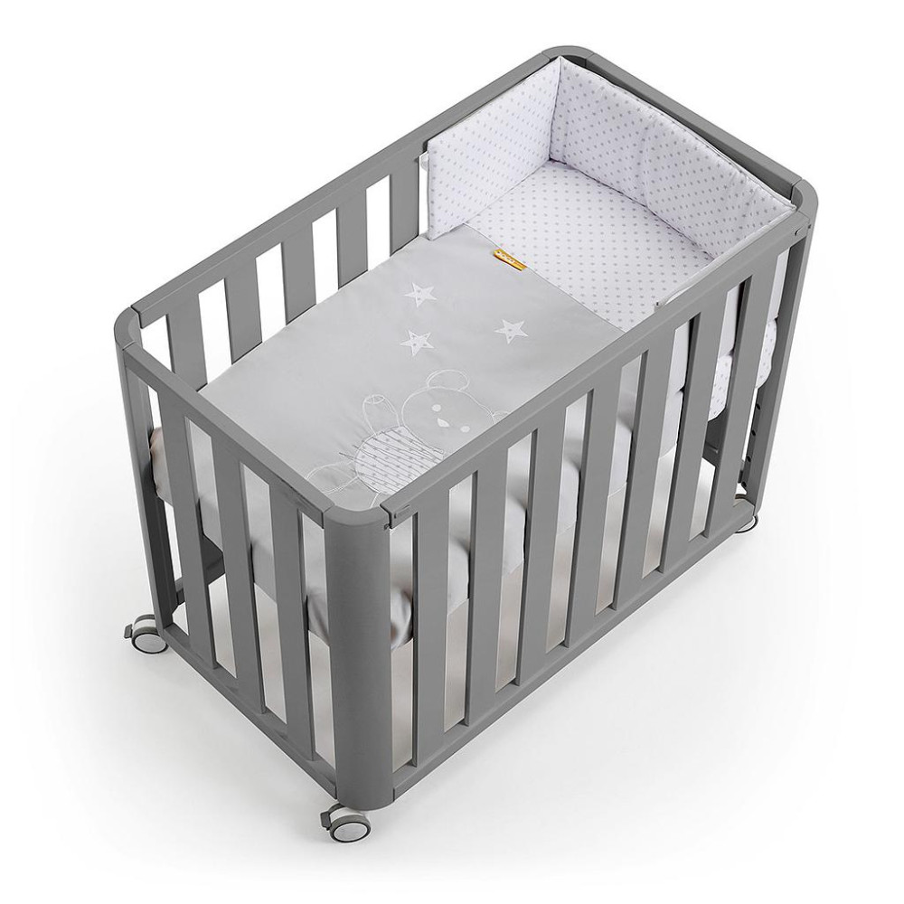 Dispone de un lateral móvil que se extrae sin necesidad de ninguna herramienta lo que permite la práctica del colecho y su utilización como cuna de manera indistinta.