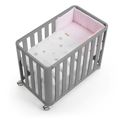 Dispone de un lateral móvil que se extrae sin necesidad de ninguna herramienta lo que permite la práctica del colecho y su utilización como cuna de manera indistinta.