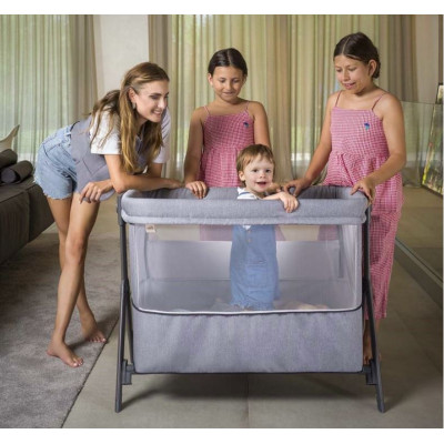 Está pensada y fabricada cuidadosamente para que puedas tener un contacto íntimo y cercano con tu bebé a la hora de dormir. Cuenta con una amplia apertura lateral con función colecho y puede regularse en 8 posiciones distintas de altura.