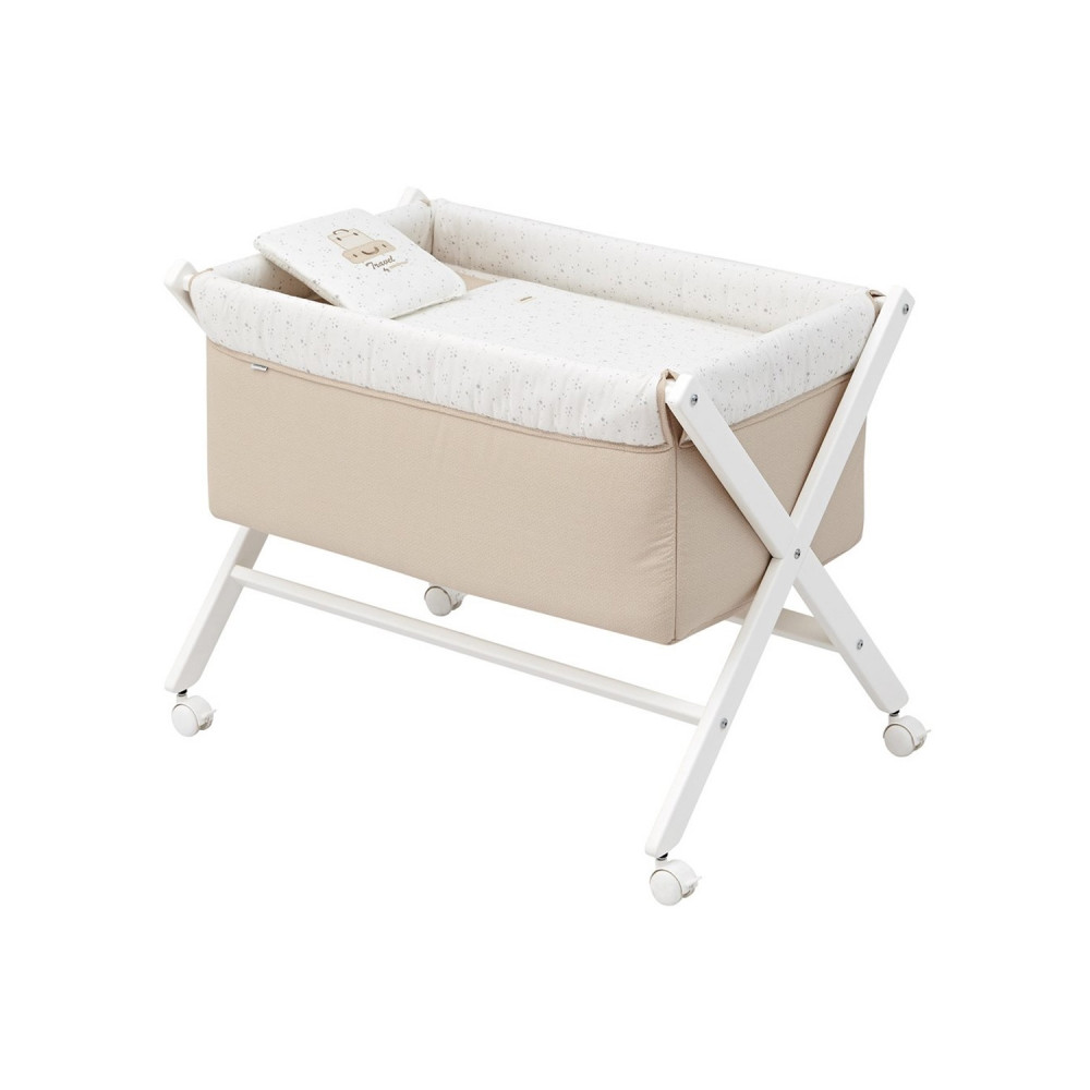 Permite el descanso del bebé en cualquier estancia de la casa durante los primeros meses de vida gracias a la movilidad que le aportan las ruedas (con freno).