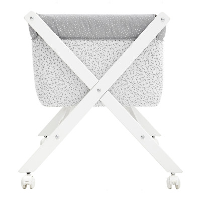 La minicuna con estructura en forma de aspa de Cambrass está fabricada en madera de haya.