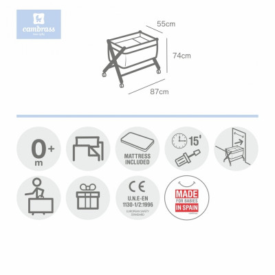 Permite el descanso del bebé en cualquier estancia de la casa durante los primeros meses de vida gracias a la movilidad que le aportan las ruedas (con freno).