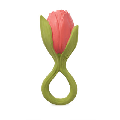 ¡Un ramo para quien más quieres! Theo the Tulip es un mordedor, juguete de baño y juego sensorial para bebés. Su forma de anilla hace que las manitas de los bebés puedan sugetarlo fácilmente mientras juegan con un mordedor natural y seguro. Su amplia variedad de texturas estimula los sentidos del bebé y calma las encías durante la dentición.