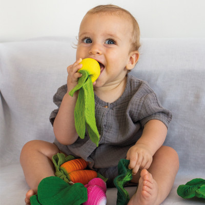 ¡2 EN 1! ¡Es un mini doudou y un mordedor al mismo tiempo!