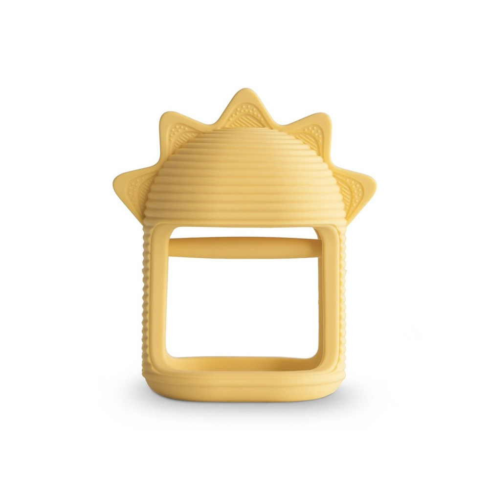 El mordedor No-Drop Sun de Mushie está diseñado para proporcionar el máximo confort y alivio a los más pequeños durante su difícil fase de dentición.