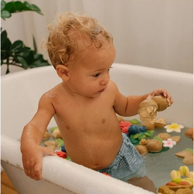 Este producto es perfecto como mordedor, juguete de bebés y niños, juguete para la hora del baño, como juguete para juego sensorial y objeto decorativo. Está hecho siguiendo un proceso artesanal y sostenible con caucho 100% natural extraído de los árboles Hevea. Cada uno se crea de una sola pieza, por lo que se evita la creación de bacterias en su interior. Pintados a mano uno a uno con pigmentos naturales, ¡no hay dos iguales!