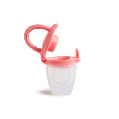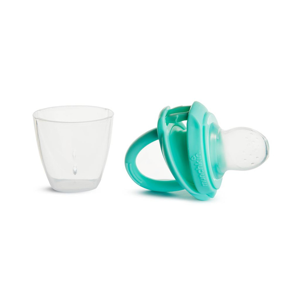 El alimentador antiahogo Munchkin está hecho 100% de silicona alimentaria, es práctico y permite a los bebés chupar y masticar la comida de forma segura.
