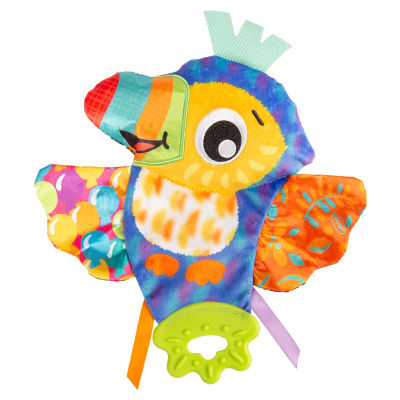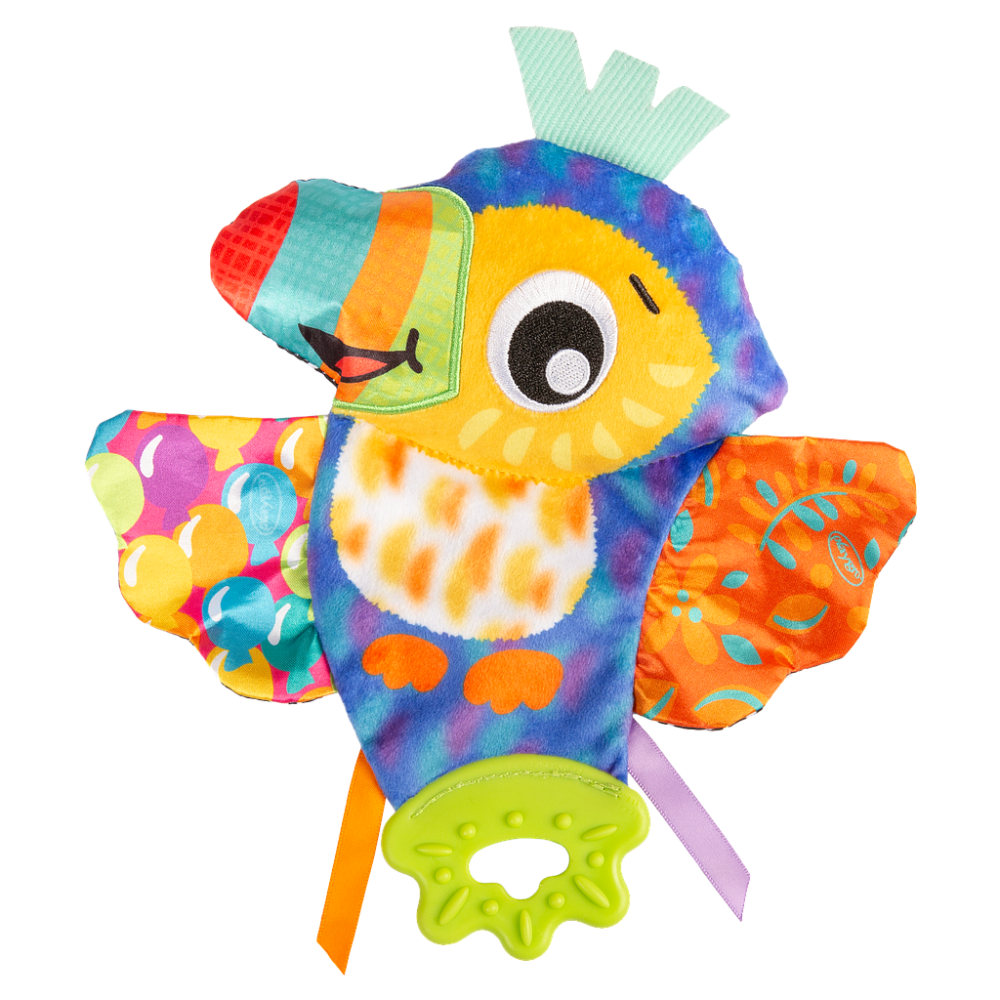 Juguete de actividades Crinkle Blanketie Tamika Toucan de PlayGro con un adorable diseño. El compañero perfecto tanto para jugar como para dormir.