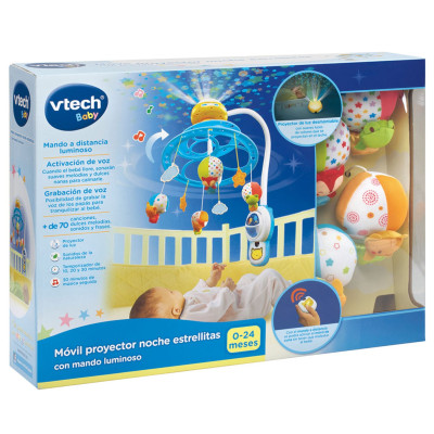 Tiene función de grabación de voz para que el bebé pueda escuchar la voz de sus padres, que le tranquilizará y ayudará a dormir; un mando a distancia con botón luminoso para controlar el proyector y programador de tiempo (10, 20 y 30 min) para las melodías.