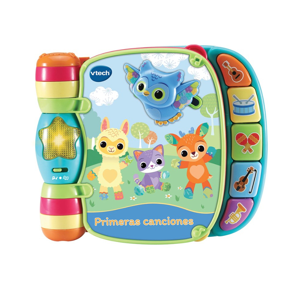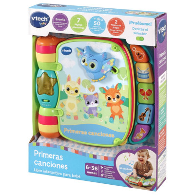 Primeras canciones es el primer libro musical que ayudará al pequeño en su desarrollo integral: escuchando y cantando canciones populares, aprendiendo colores e instrumentos musicales y manipulando sus páginas.