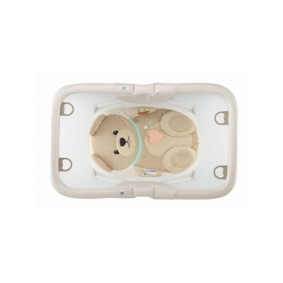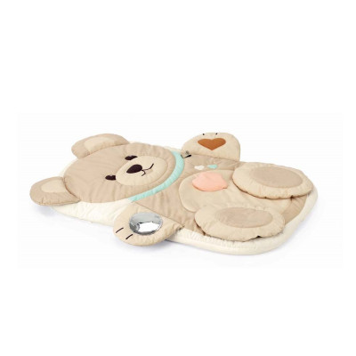 con 4 asas de soporte, aro acolchado y resistente a los mordiscos, red de seguridad para los dedos, suaves protecciones de los tubos. Manta de juego multifuncional utilizable desde recién nacido, con muchas actividades de juego y interactivas (espejo, papel con sonido…), pequeños juegos removibles y suaves peluches en forma de oso, tortuga y conejo.