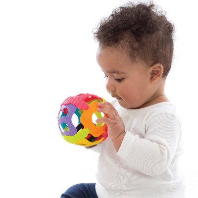 Shake Rattle and Roll Ball ofrece una variedad de texturas con superficies suaves y colores vibrantes.