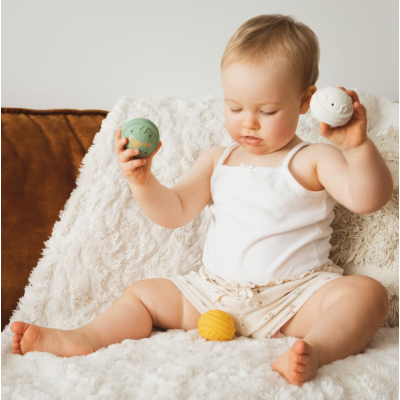 Estimula la audición de tu bebé con estas maravillosas bolitas de Sophie.