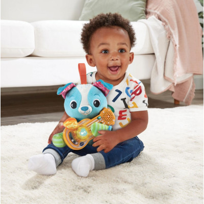 Disfruta de la música con el Cachorrito musical, pulsa el botón luminoso de la guitarra para ver al cachorrito cantar y tocar la guitarra. ¡El peque descubrirá los distintos estilos musicales y lo pasará en grande con este simpático cachorro!