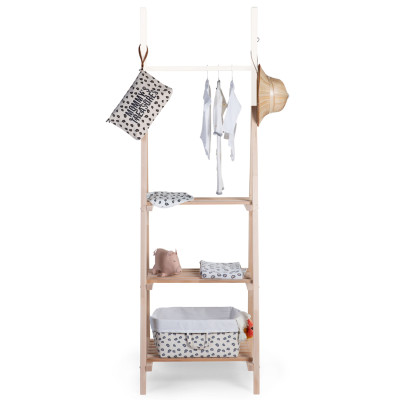 Este gran perchero abierto con un divertido estilo tipi es ideal para los pequeños aventureros. El soporte tiene 3 estantes y un estante para colgar en la parte superior para que puedas colgar fácilmente la ropa de tus hijos. Por supuesto, el perchero tipi también se puede utilizar para colocar bonitas cestas de almacenamiento u otros bonitos artículos de decoración. El perchero siempre se verá hermoso en todas las habitaciones de los niños con su aspecto neutro y fresco.
